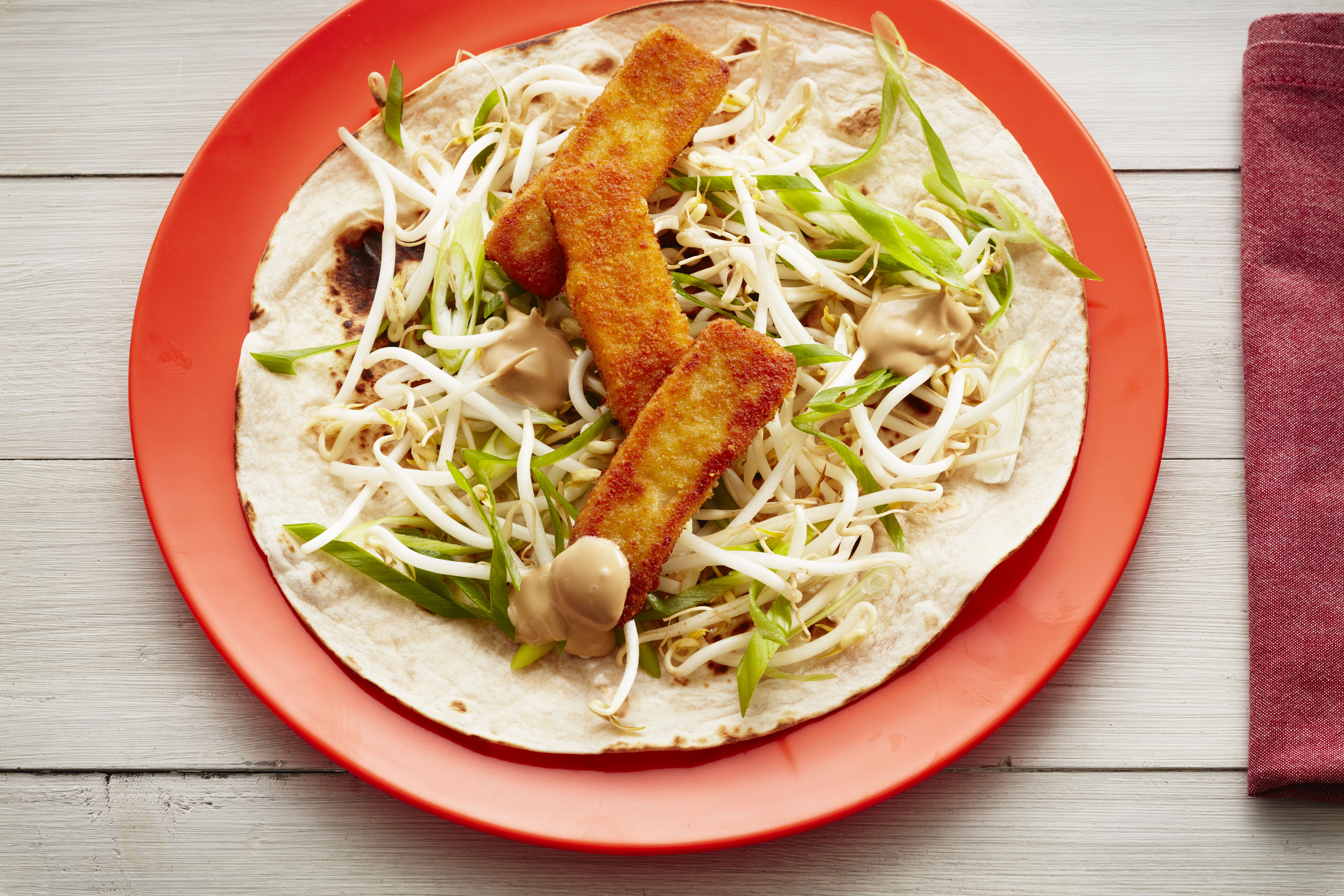 2. Wraps er en god løsning på travle dager, og denne varianten med fiskepinner, vårløk og soyamajones vil nok overraske deg. Den er utrolig god, smakfull og litt annerledes.